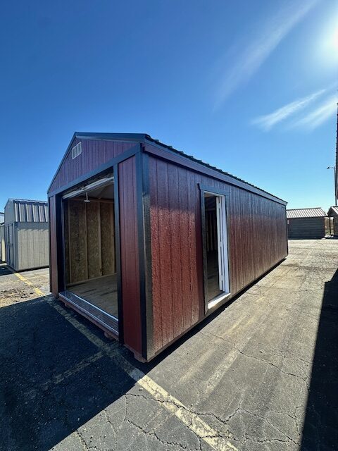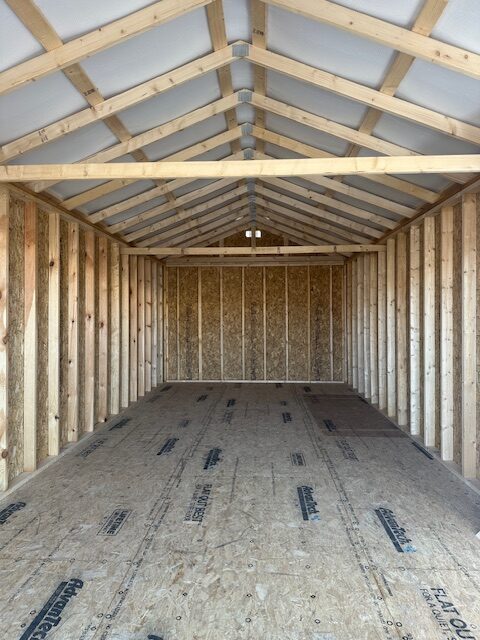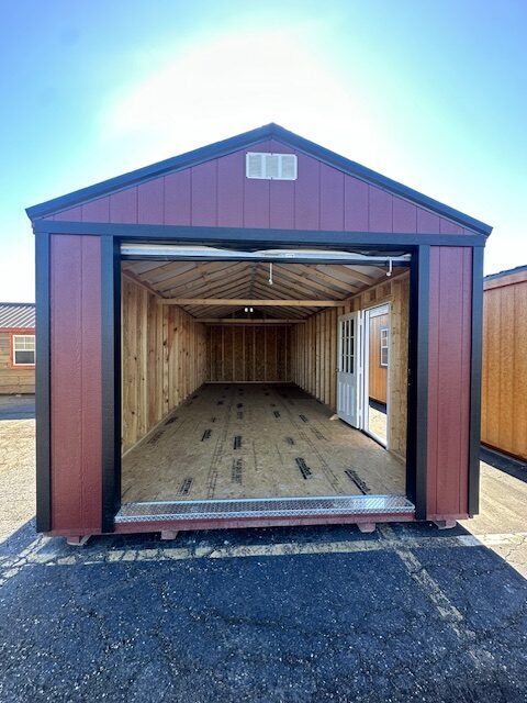 12×28 Lakeside Garage. Perfect to get all your valuables out of the weather and out of your house. 😉 It comes with a roll-up door and a 9-light man door, bubble foam insulation in the roof.
