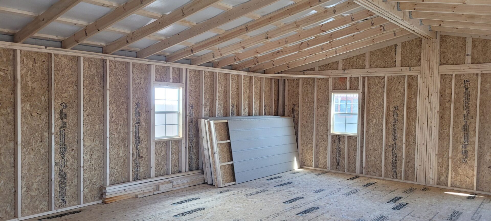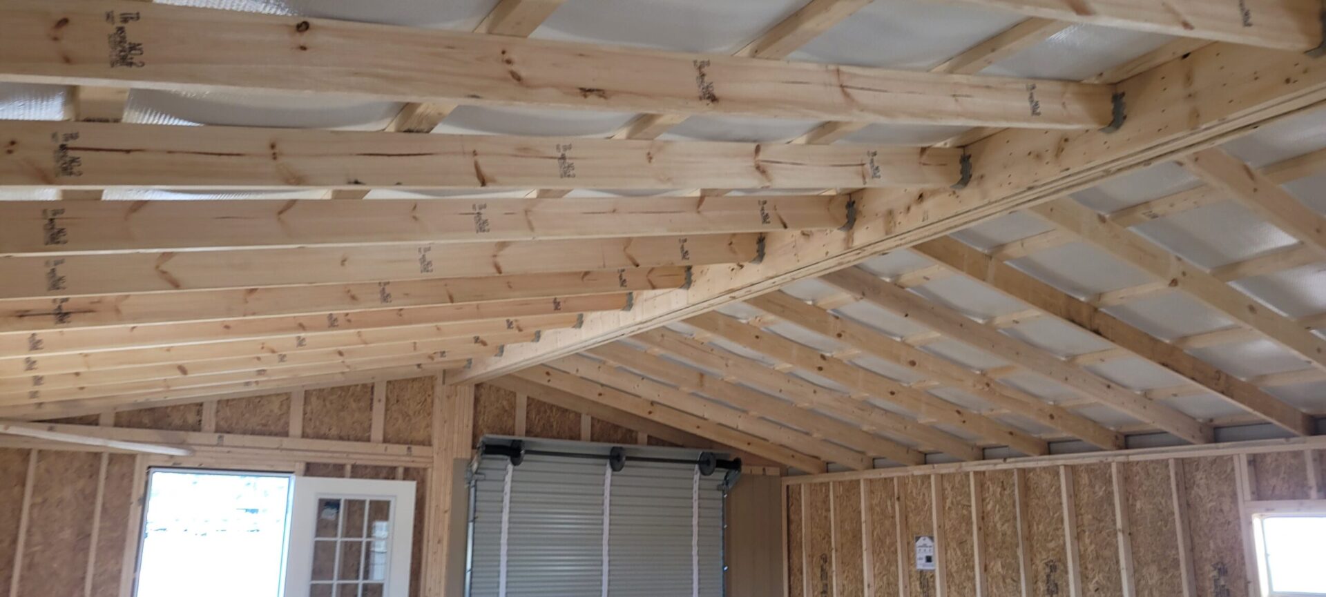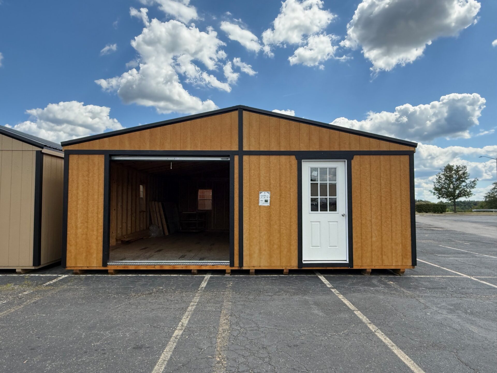 24X28 Double wide garage, includes 4 windows, 7×8 rollup garage door, 1 = 9 lite door. This style of building can be custom-ordered in many different sizes and colors. Amish built in Ohio!